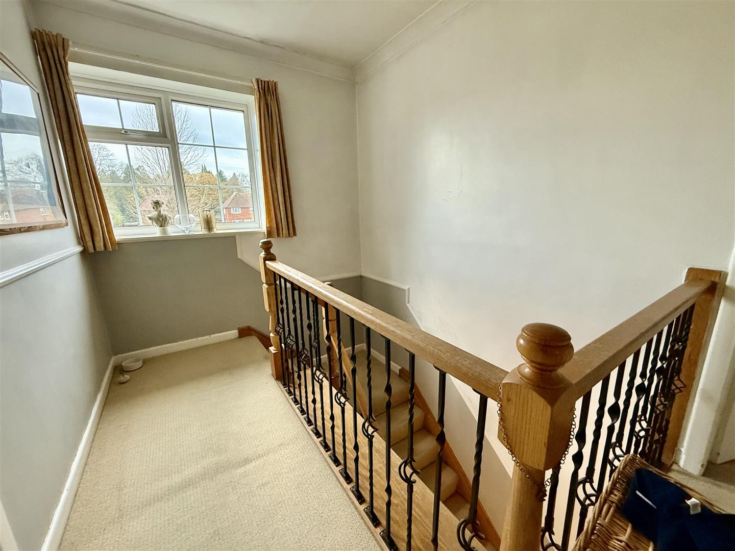 The landing is a lovely feature within itself with original wooden balustrade and a large window overlooking the green to the front.