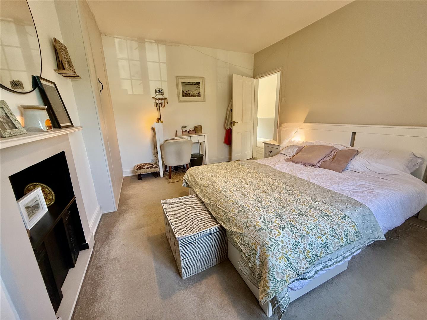 Double bedroom with a pretty cast iron fireplace and built in wardrobe and overlooking the front aspect
