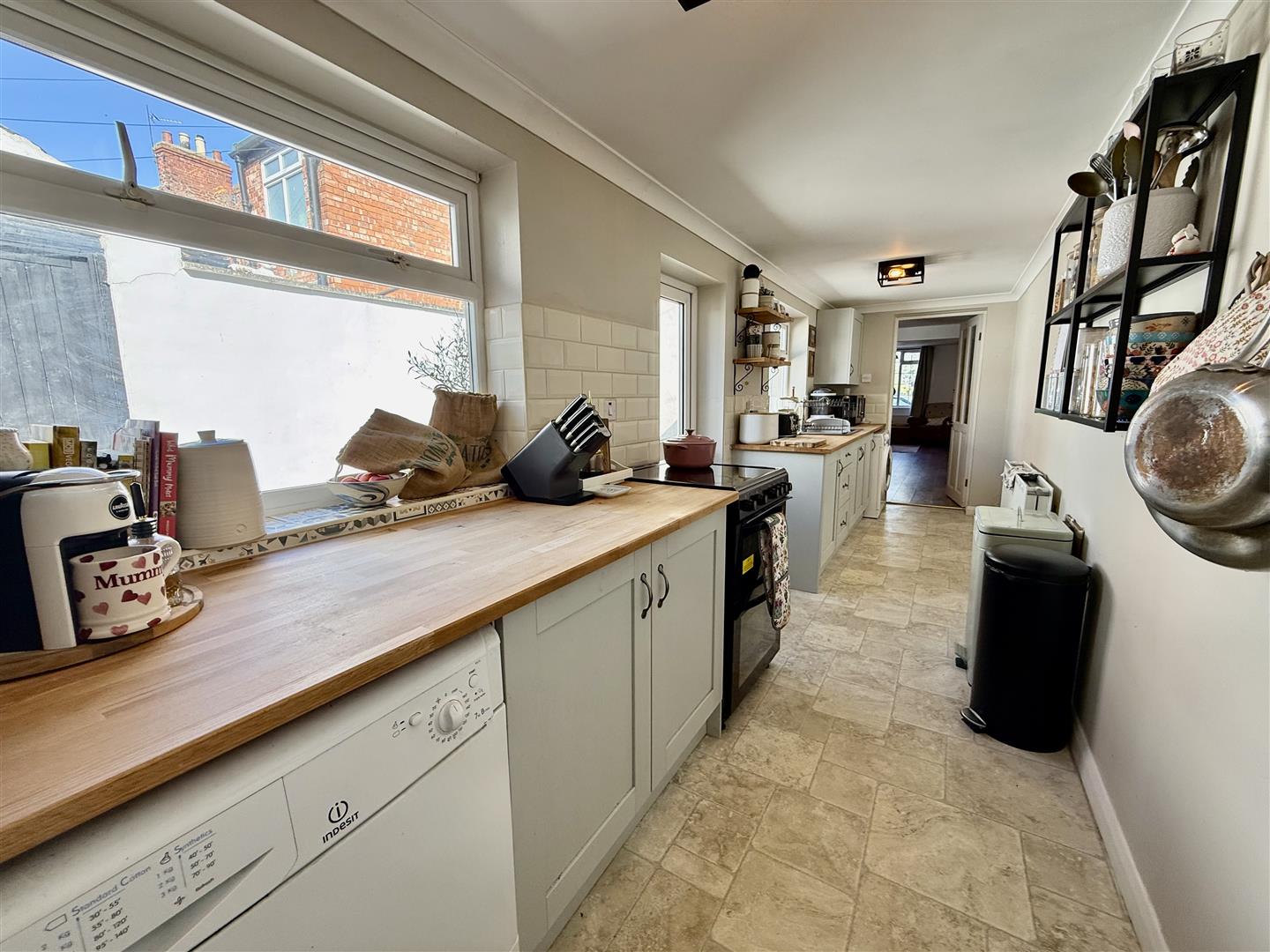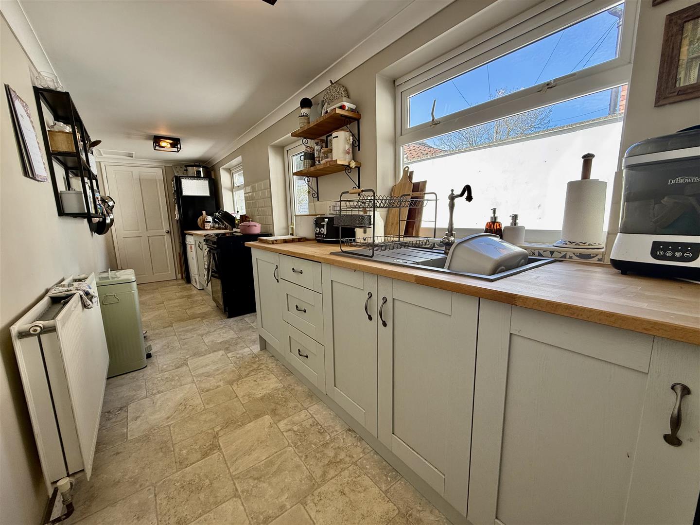 Well planned with an ample range of wall, floor and drawer cabinets with complementing worksurfaces and integrated appliances. A door leads to the rear courtyard and to the ground floor WC.