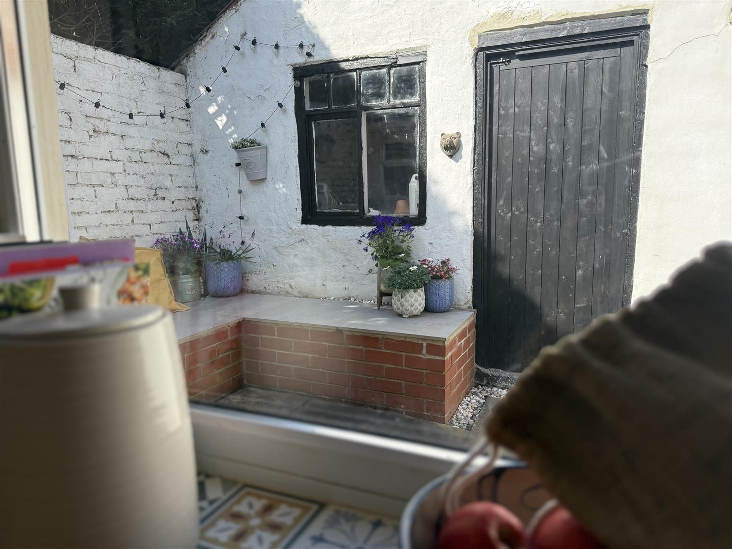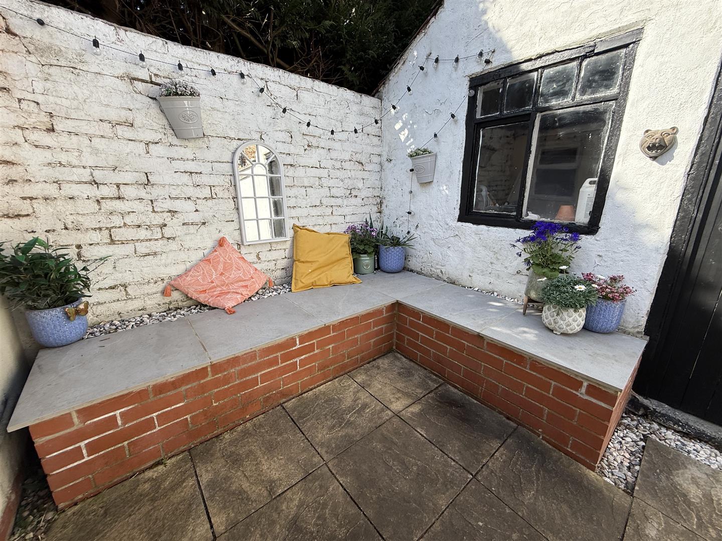 There is a pretty enclosed courtyard to the rear of the property which has fixed seating and atracts a great deal of the summer sunshine. A door opens into a useful brick built storage shed and there is an access gate at the side leading through a passageway to the front.