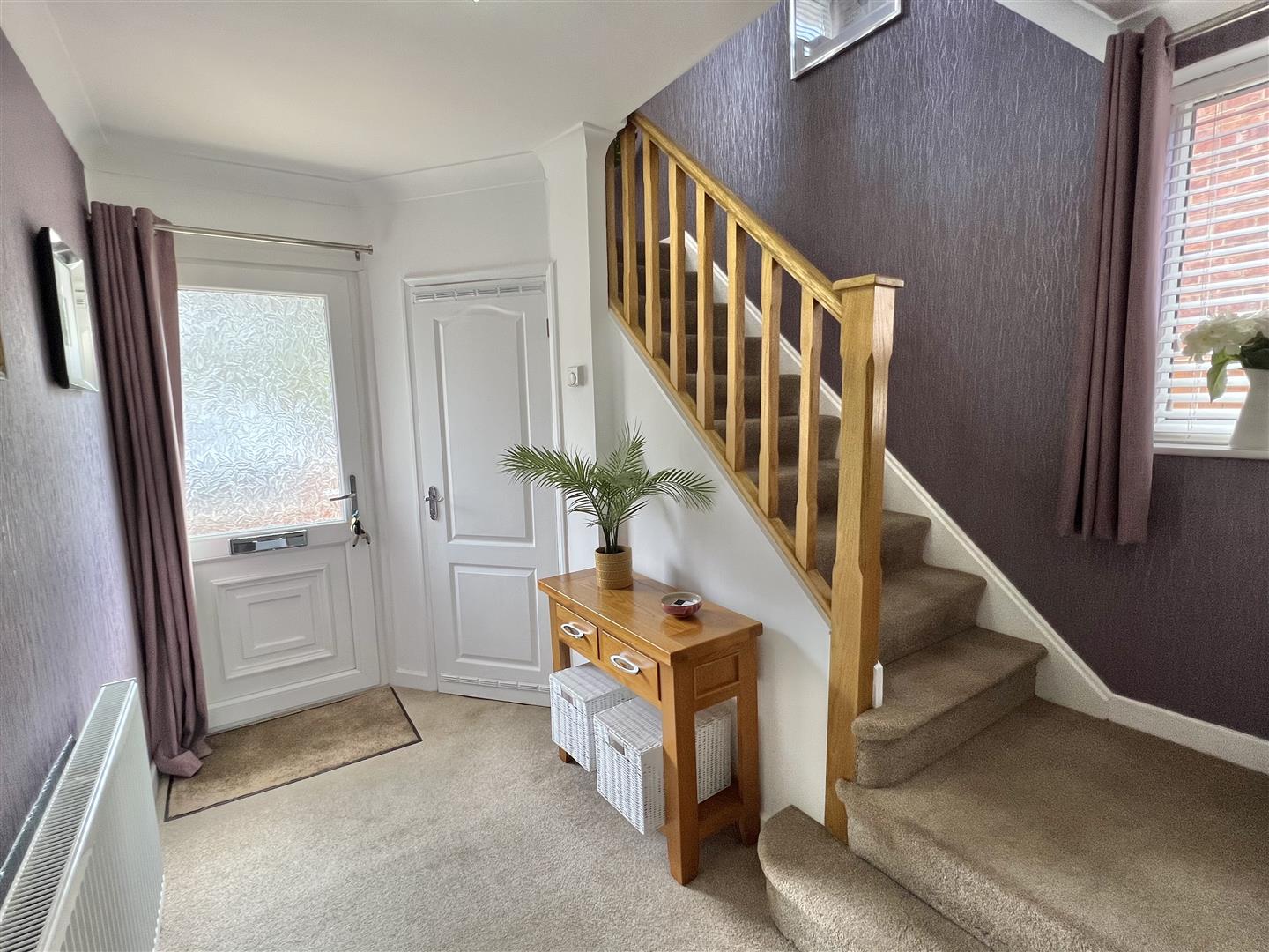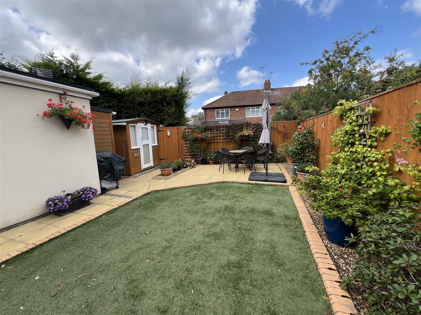 Externally, the front garden is enclosed by a low wall and laid to lawn with mature planting, there is also a driveway providing access to the garage. The rear garden offers a generous lawn with established borders and a private patio area at the far end ideal for outdoor entertaining.
