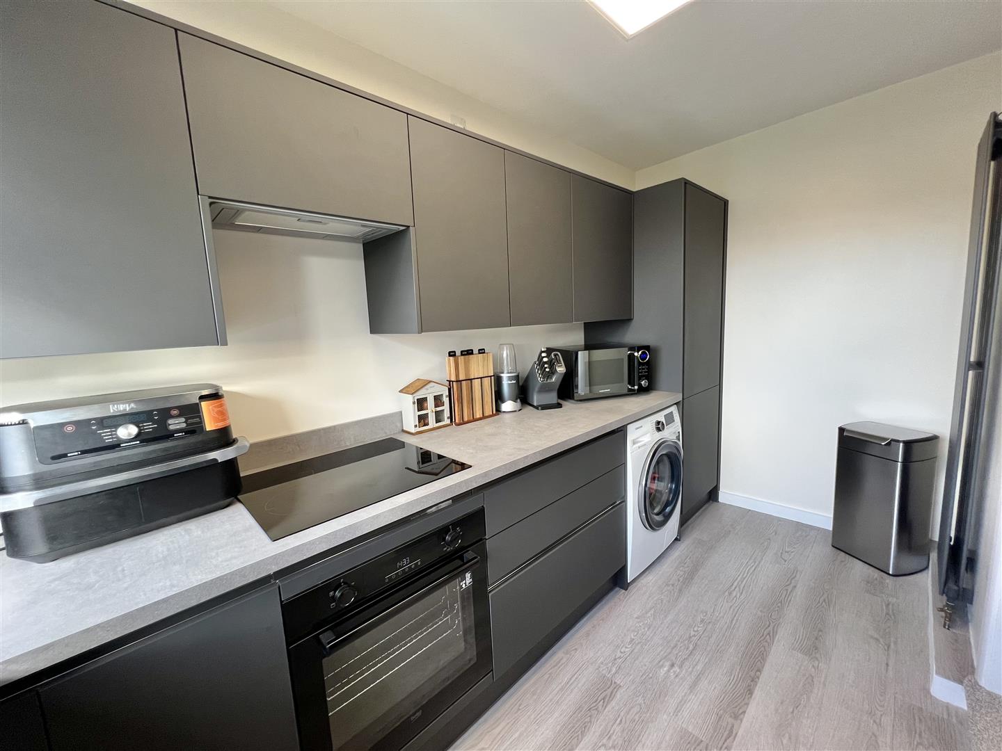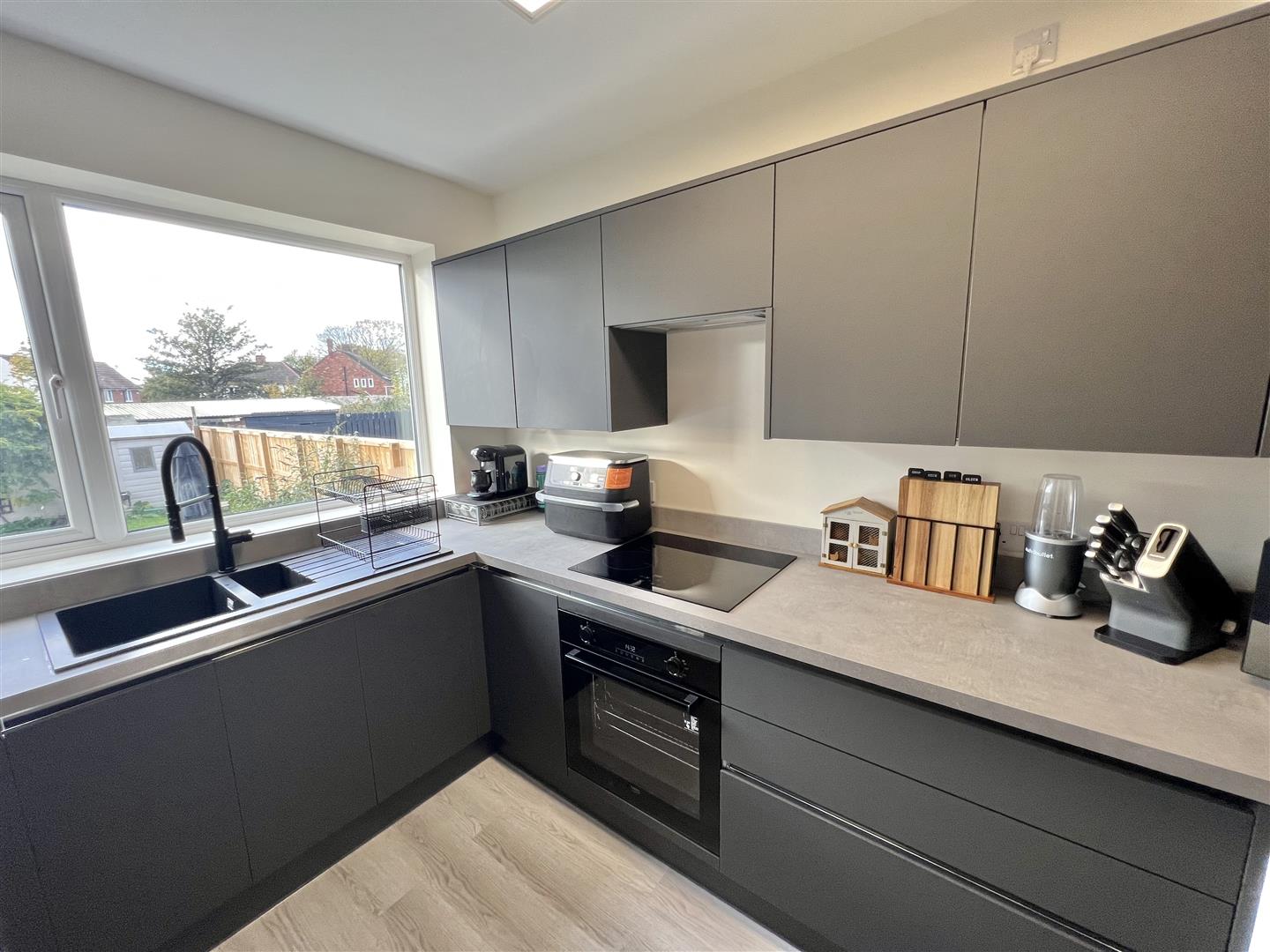 The accommodation is spacious and well laid out, comprising an inviting entrance hallway, a generous lounge-dining room with bay window to the front and French doors opening directly onto the rear garden, creating a bright and airy living space. The recently refitted modern kitchen offers an excellent range of wall and floor units with integrated appliances and quality work surfaces.