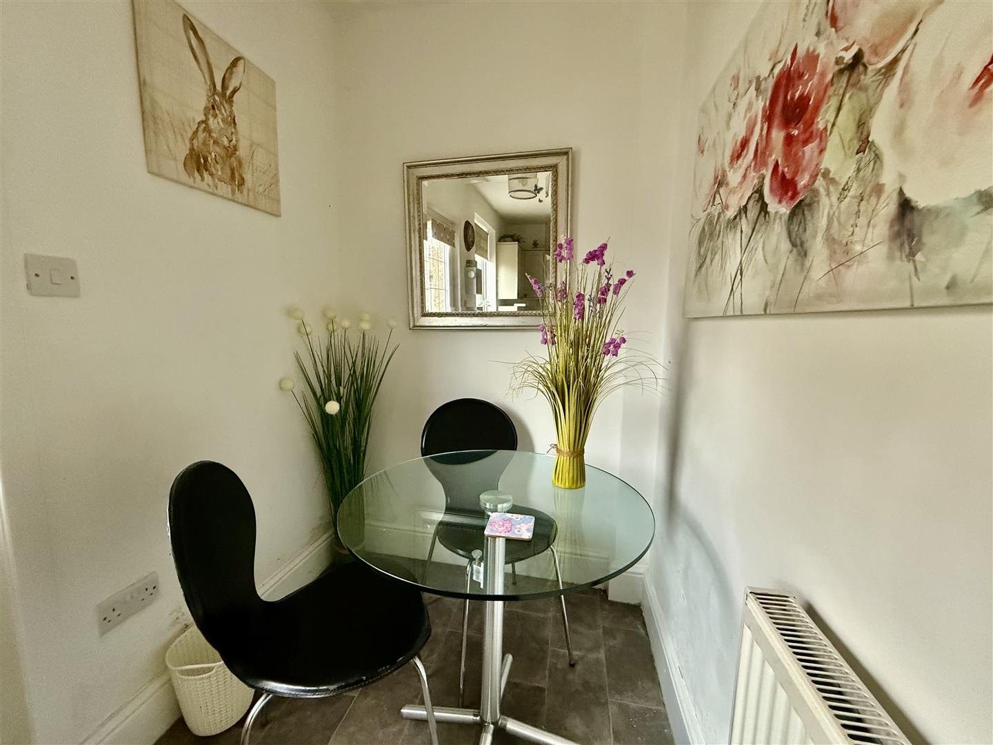 A sizeable reception room, dual aspect with a window to the front and rear. A log burning stove is at the heart of the room and casts a cosy glow when needed.