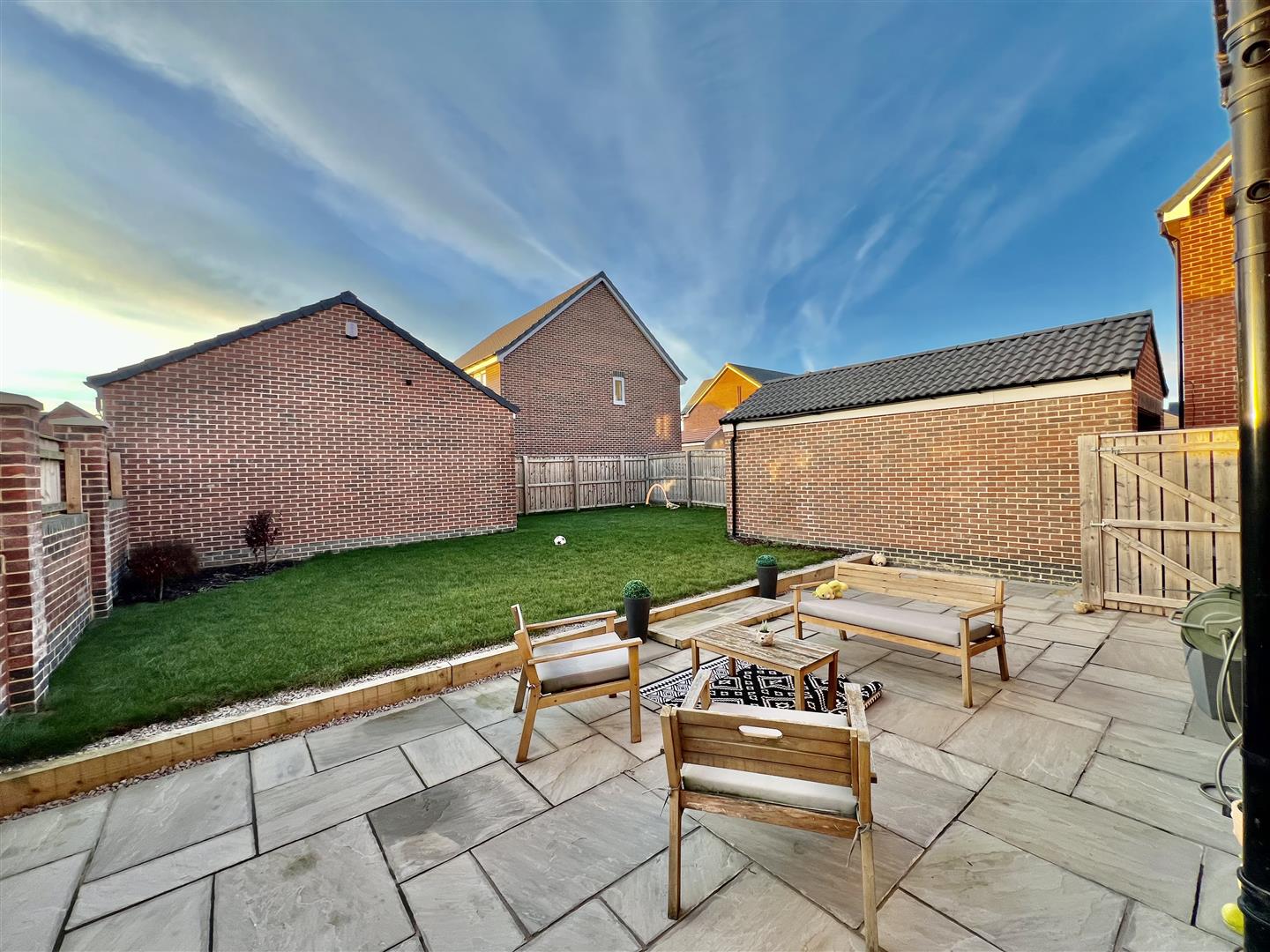 Tucked away at the end of a quiet cul-de-sac on the popular Raspberry Grove, this modern detached home delivers space, style, and everyday practicality. Built in 2023 and improved by the current owners, the property feels fresh and contemporary throughout, with standout features including granite kitchen worktops and a well-designed west-facing garden.