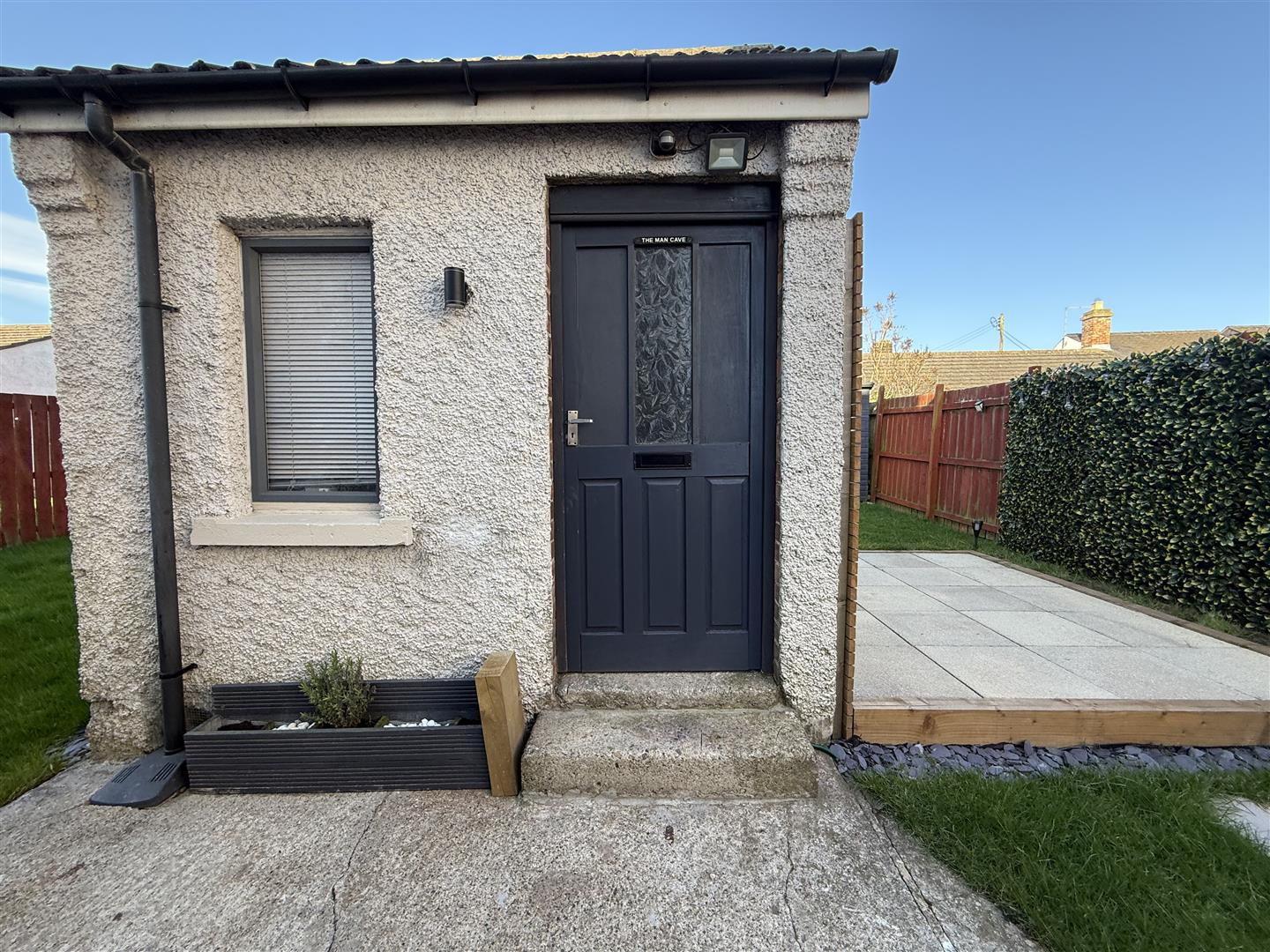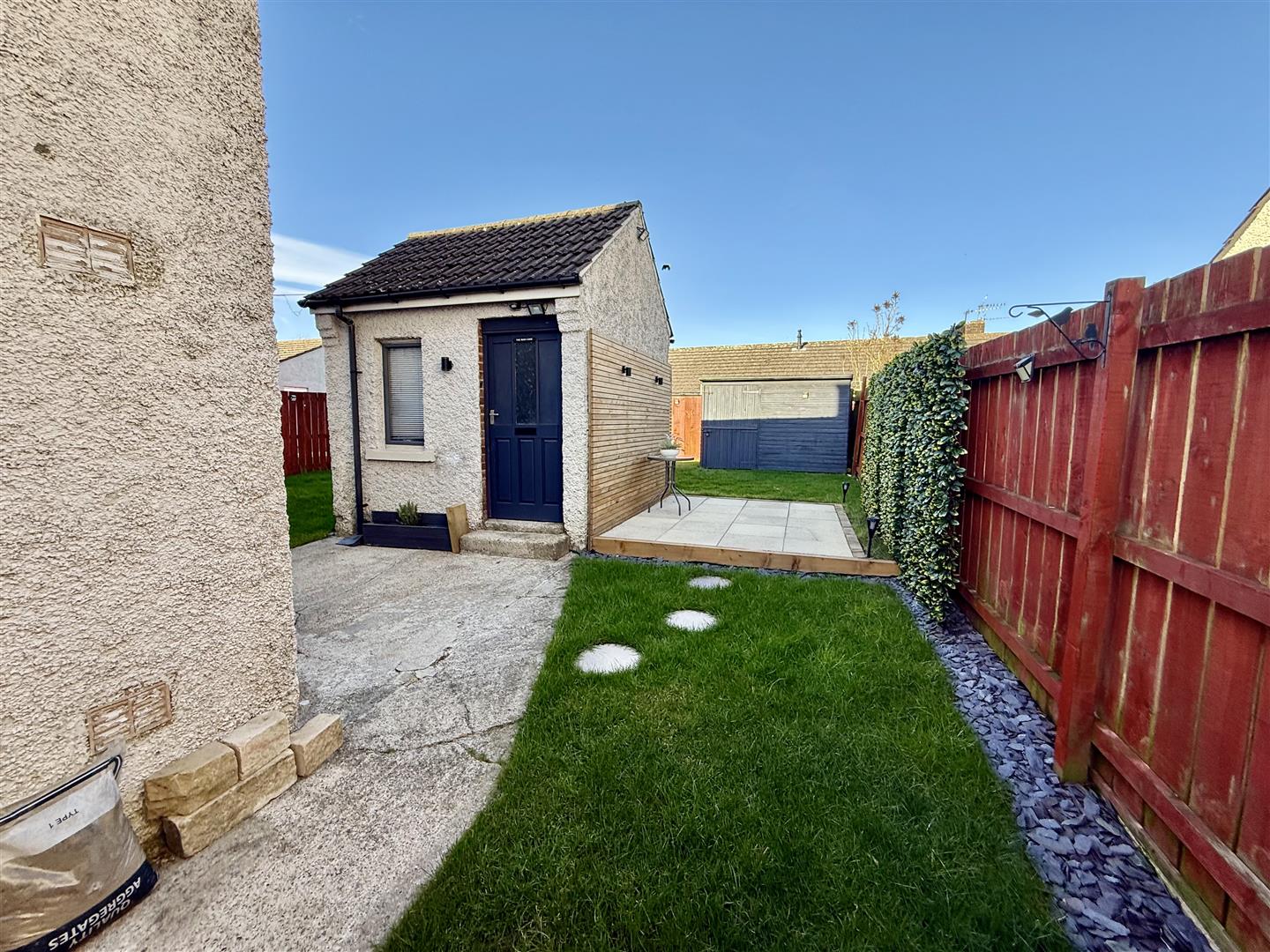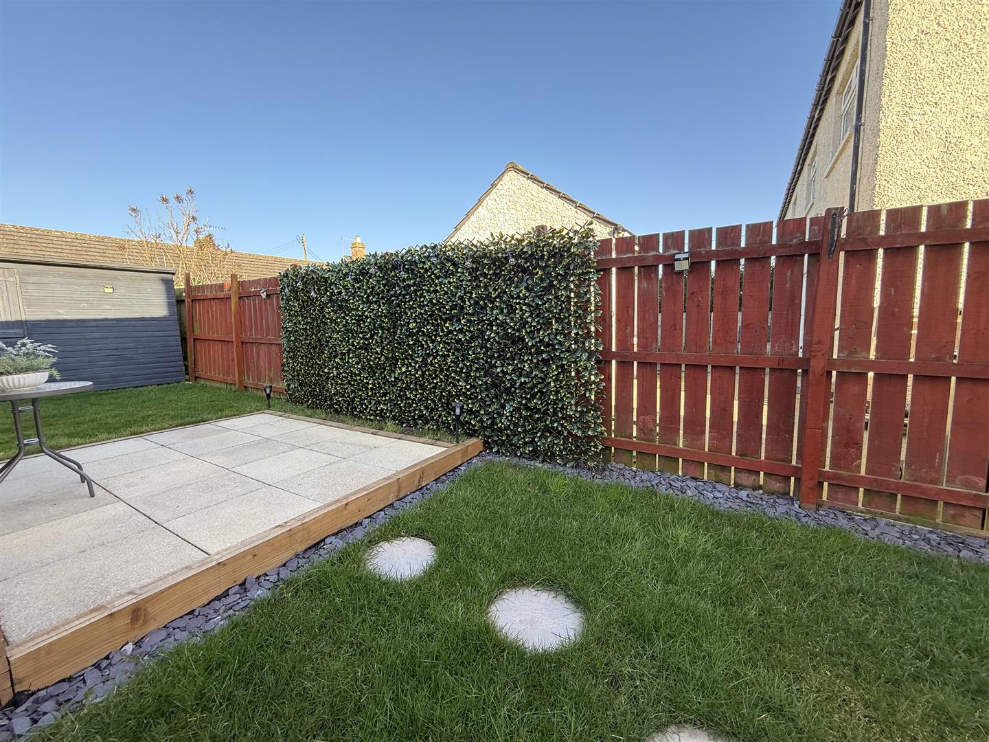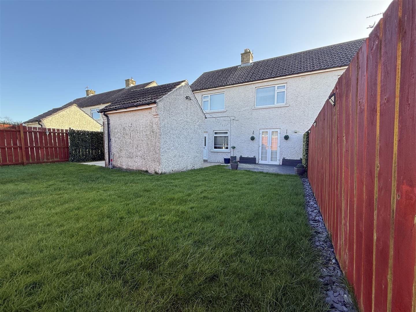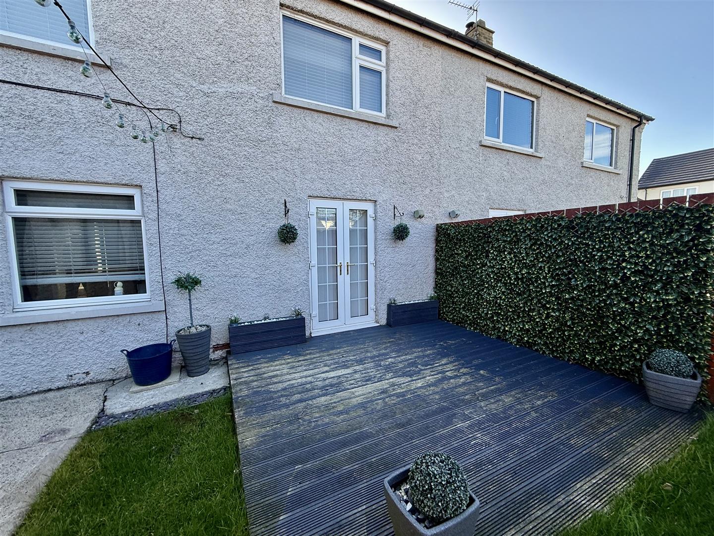 Externally there is a block paved driveway allowing for off street parking for two vehicles. A single gate leads through to the rear garden which is enclosed by fencing and mainly laid to lawn. There is also a brick built and rendered out house which has a window and wooden glazed door and offers versatile use of paved patio seating area to the side of the building. There is a further storage shed towards the rear of the garden. There is a further decked seating area which sits just in front of the French doors opening from the lounge.