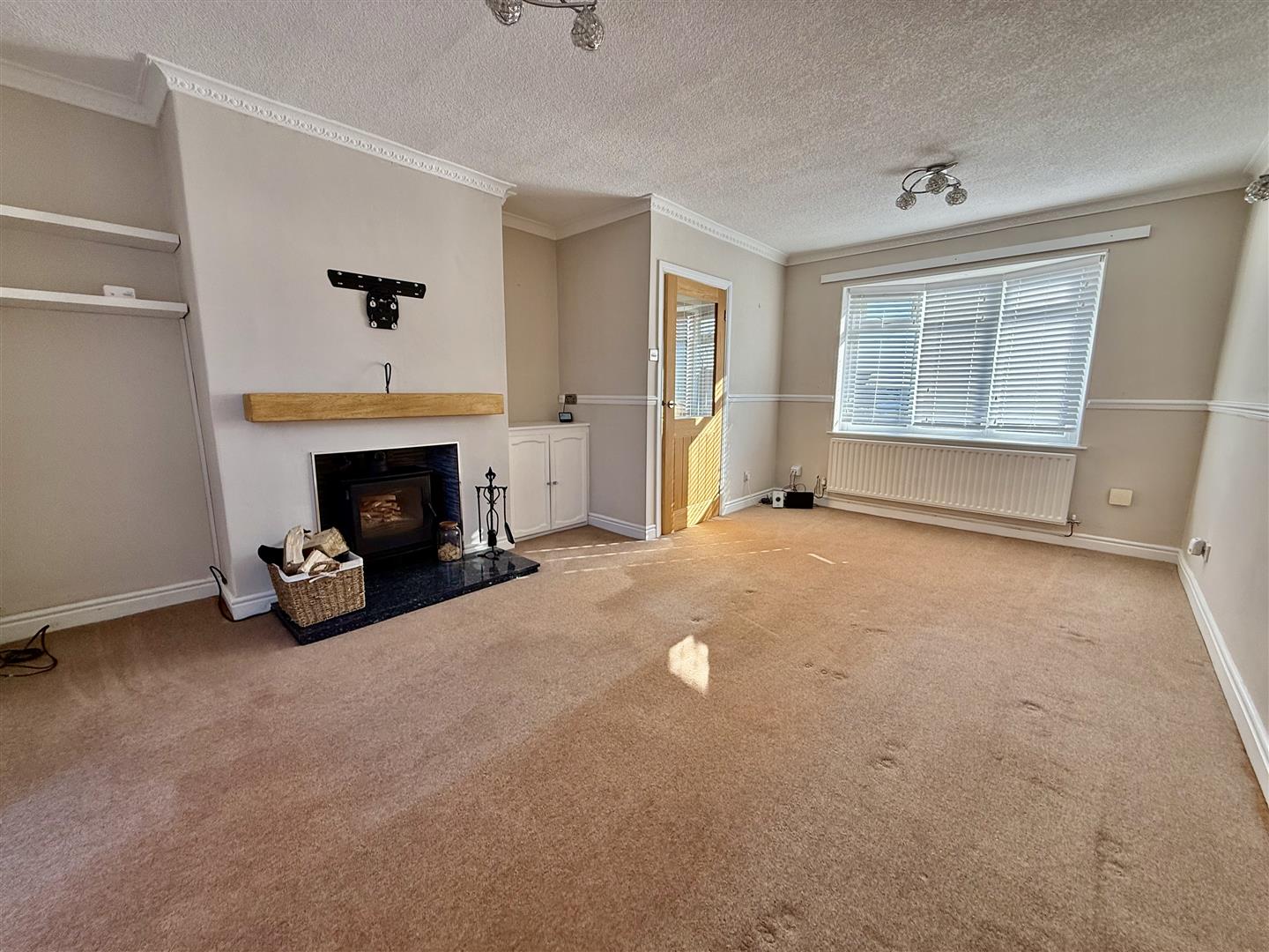 A sizeable reception room which is dual aspect with a bay window to the front and French doors leading out to the rear garden. An inset chimney breast houses a log burning stove which casts a cosy glow whenever needed. All finished off with a wood effect mantel sitting above it.