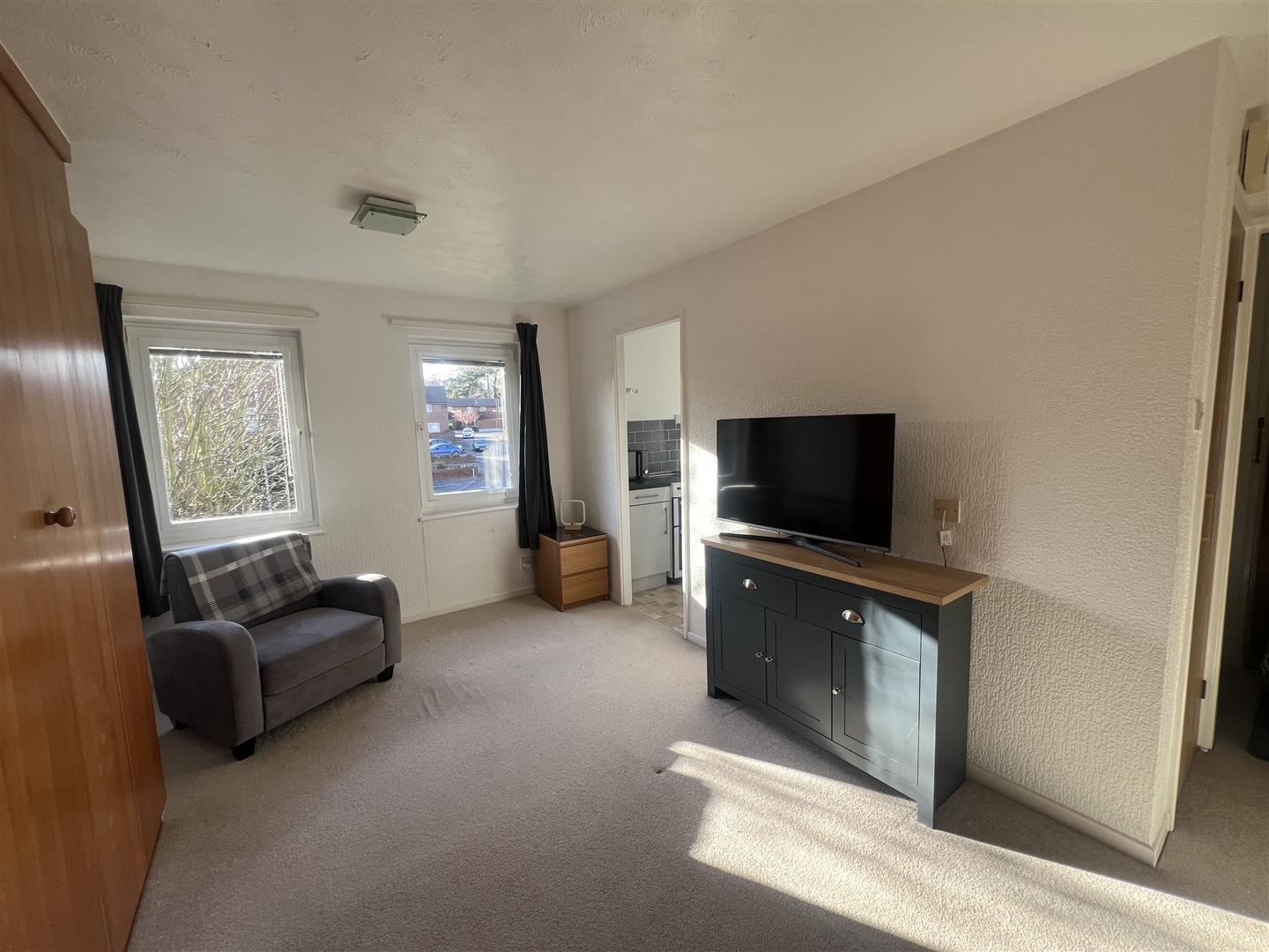The first floor studio apartment is in ready to move into order boasting living accommodation with walk in storage cupboard and built in wardrobe and pull down bed, refurbished Kitchen overlooking the front aspect and including appliances, and refurbished modern Bathroom, comprising of a white suite with electric over bath shower and screen, and in addition there is access to the loft for further storage. The property is positioned withing communal gardens and has the benefit of an allocated car park space.